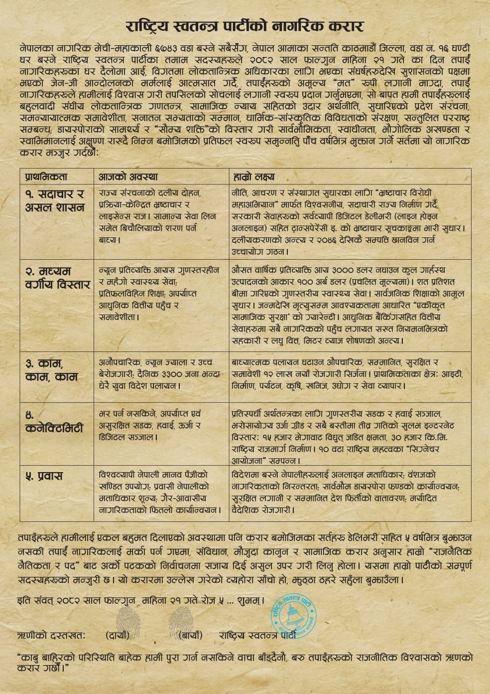 राष्ट्रिय स्वतन्त्र पार्टीको ५ वर्षे लक्ष्य सार्वजनिक